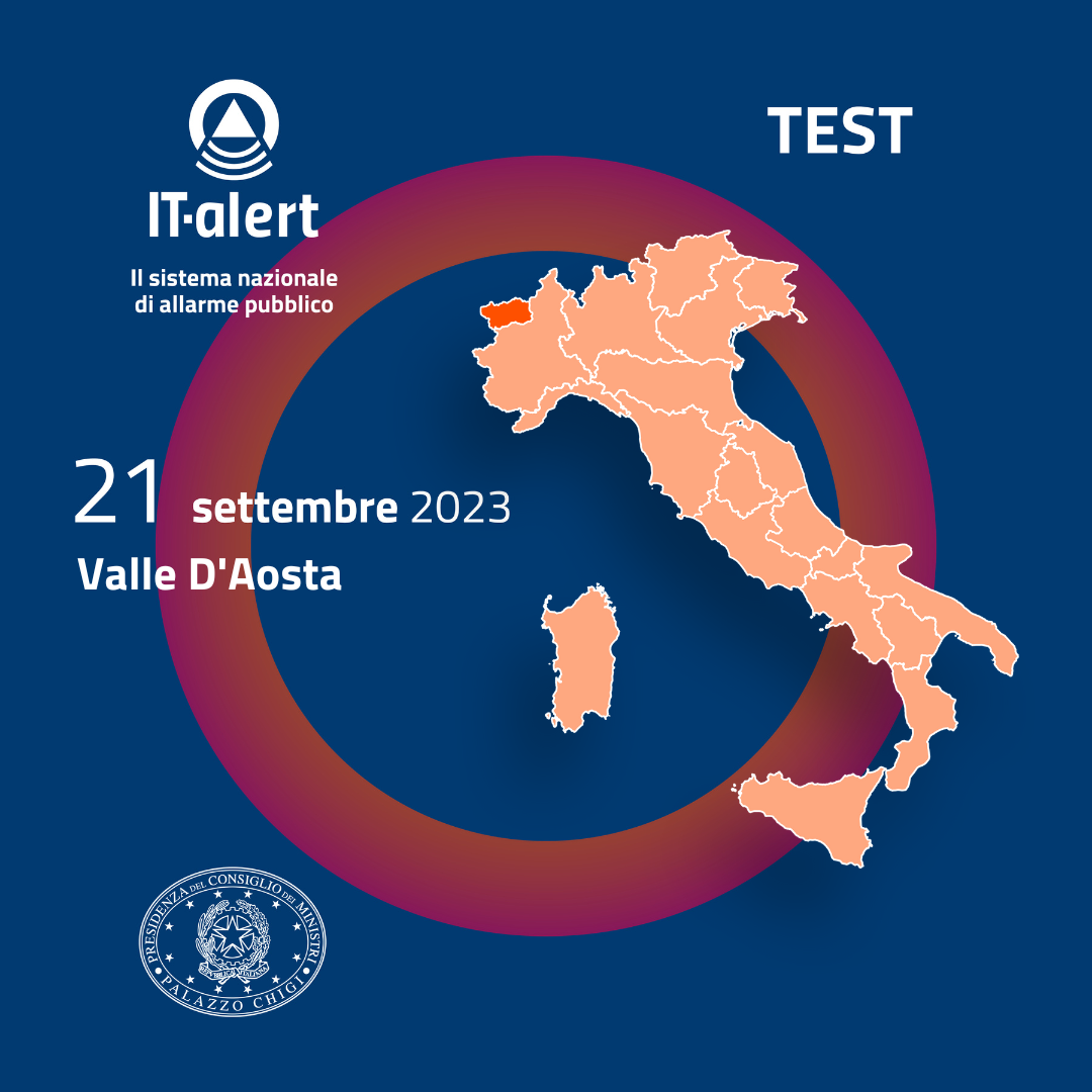 In Valle d’Aosta il sistema sarà testato giovedì 21 settembre 2023 alle ore 12.00.