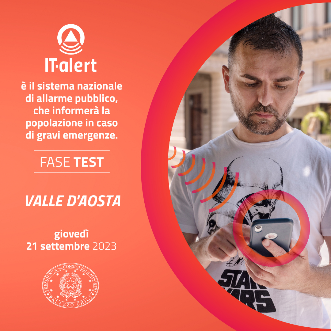 In Valle d’Aosta il sistema sarà testato giovedì 21 settembre 2023 alle ore 12.00.
